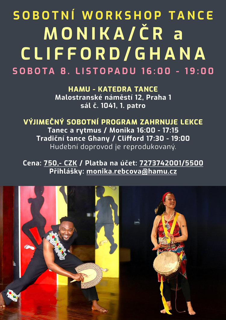 Vyučujeme pravidelné kurzy tance (africký tanec, moderní tanec, taneční improvizace, street dance) pro veřejnost v Praze.